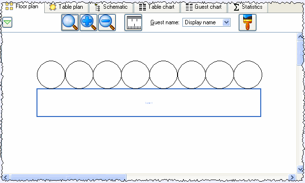 Click the Add button. A long rectangular table with 8 seats down one side will now appear near the centre of the Floor Plan pane.