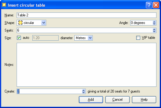 Note that you can see how many seats you will have after the tables have been added, in this case 20 seats.
