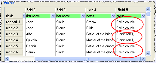 Select the appropriate guest properties from the drop-down lists in each Preview table column. For example select last name at the top of the column if the column contains guest last names.