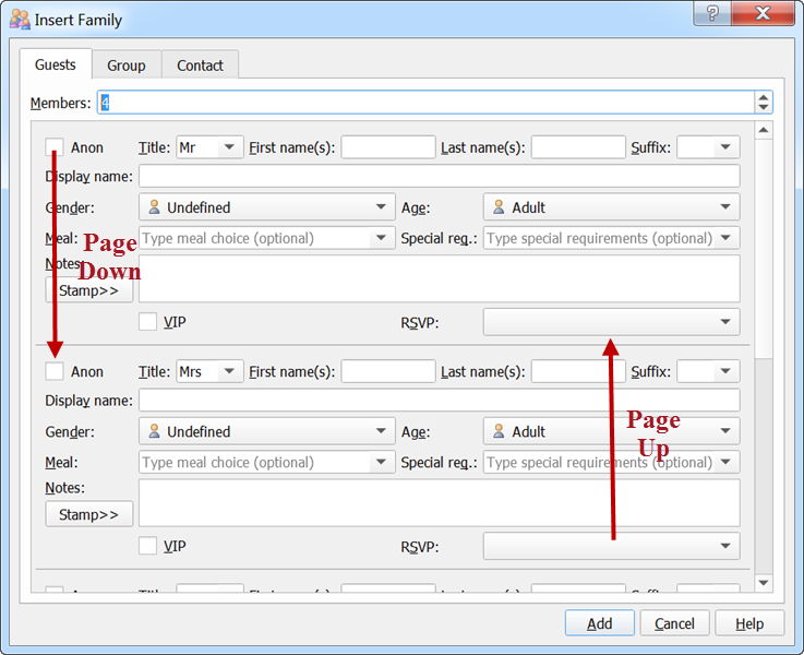 In the Insert Couple, Insert Family and Insert Group windows you can now jump between guests using Page Up and Page Down keyboard keys.